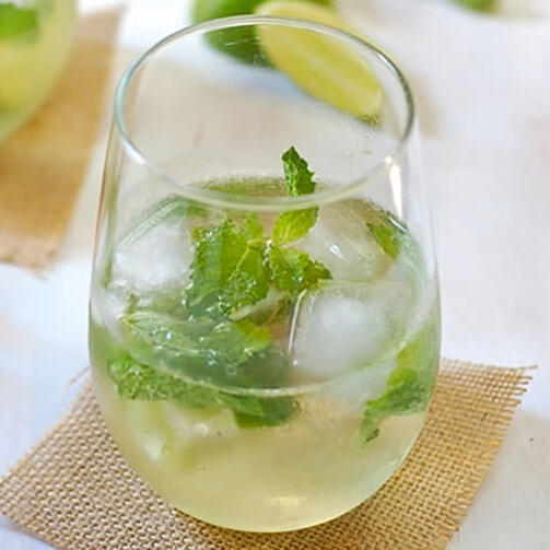 Ingredients: Agave sap, lime, mint leaves, white wine, soda water.