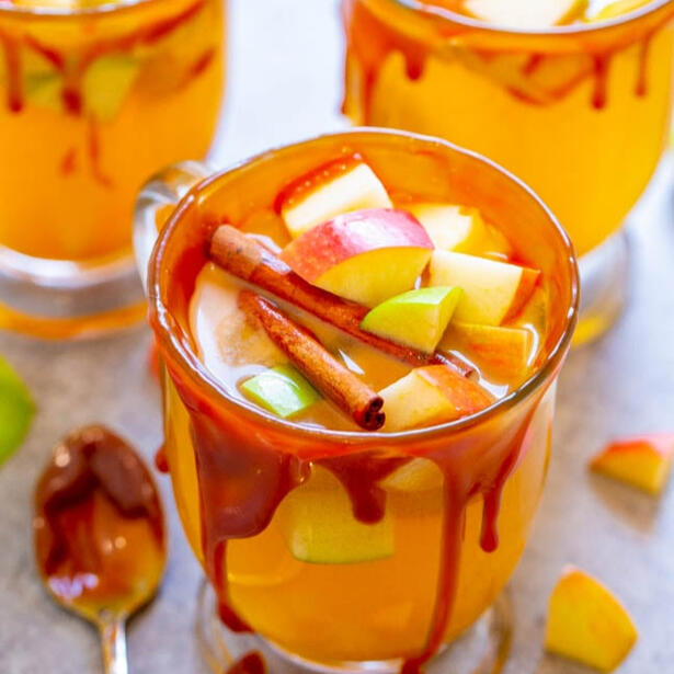 Ingredients: Crisp apple cider, cinnamon, apple slices, and drinker's choice of caramel or candy apple syrup