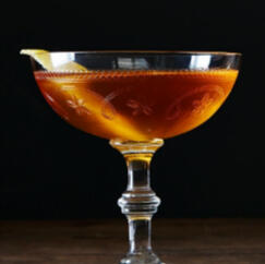 Ingredients: Smoked Garlean Whiskey, Faerie Apple Brandy, Elder Flower Liqueur, Orange Bitters, Honey Lemon Peel garnish