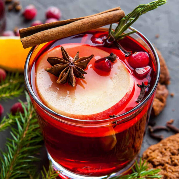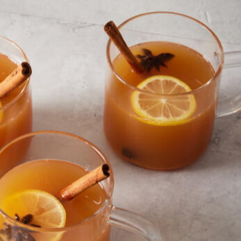 Ingredients: Apple Cider, Orange Juice, Sliced Honey Lemon, Ginger, Black Tea, Cinnamon Sticks, Cardamom, Cloves, Allspice, Star Anise, Nutmeg, Rice Whiskey