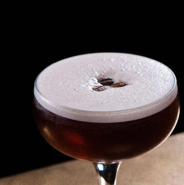 Ingredients: Vodka, Coffee Liqour, Creme de Cacao, Espresso, coffee frothing, Espresso beans